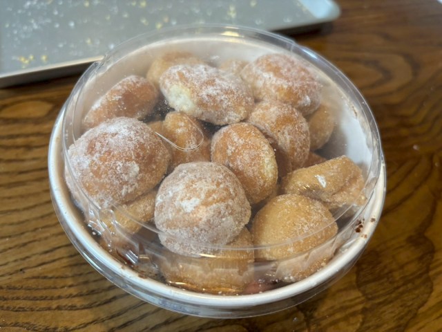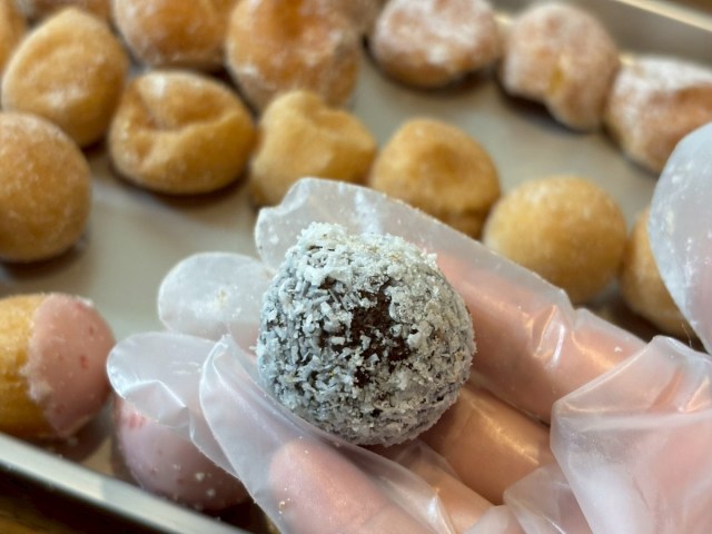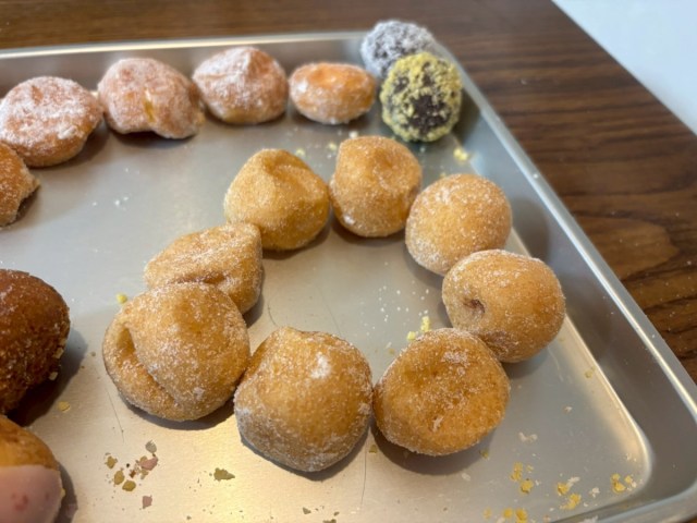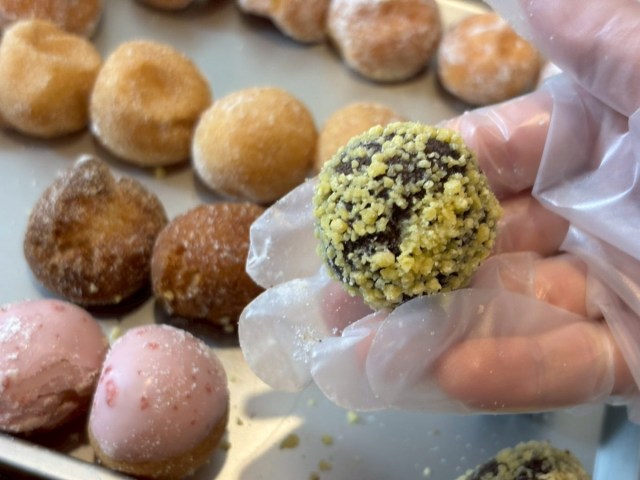 Donat di sini dikenal sebagai “Donut Pops”, yang sebenarnya sangat cocok untuk diisi, karena Anda tidak perlu khawatir akan merusak cincin apa pun seperti yang Anda lakukan pada donat biasa.