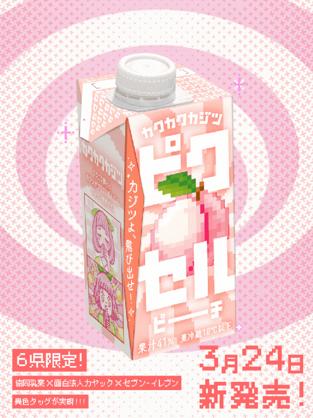 Minumannya sendiri mengandung potongan buah yang dipotong dadu, yang disamakan dengan pikselitulah namanya. Kayac bahkan meminta bantuan ilustrator untuk menciptakan karakter unik untuk minuman tersebut, dengan kata-kata “ゴクゴク” (“goku goku” [“gulp gulp”]) menunjukkan bagaimana Anda ingin meminumnya, dan apa yang terjadi jika Anda meminumnya.